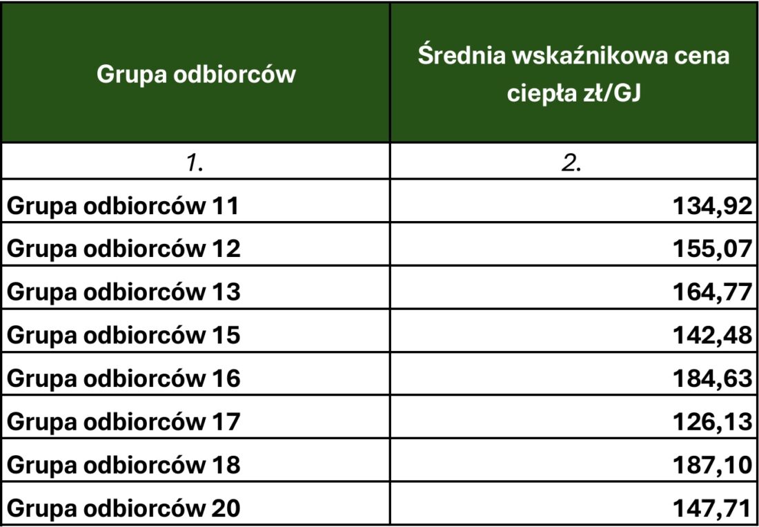 Miejska Energetyka Cieplna Sp. z o.o. w Koszalinie, działając zgodnie z art. 3 ust. 8 Ustawy z dnia 12 września 2025 r. o bonie ciepłowniczym oraz o zmianie niektórych ustaw w celu ograniczenia wysokości cen energii elektrycznej, publikuje jednoskładnikowe ceny ciepła netto stosowane w rozliczeniach z odbiorcami w poszczególnych grupach taryfowych.