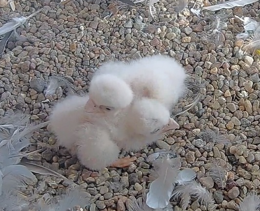 Tegoroczny lęg jest wyjątkowo mały – zwykle Nila znosiła 4 jaja i z każdego wykluwało się pisklę. W tym roku były trzy jaja, ale jedno okazało się jałowe. W konsekwencji sokola para doczekała się dwóch potomków.